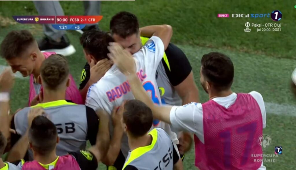 Pe final, ambele echipe au forțat golul decisiv. A venit în cele din urmă în minutul 90+1, când Radunovic a șutat cu stângul de la distanță, iar mingea a trecut pe lângă Hindrich, aducând victoria și Supercupa în contul FCSB-ului.